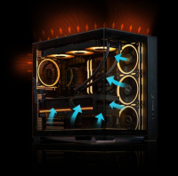 - foto skříně od výrobce + vodní chlazení CPU a v horní částí PC skříně radiátor s 2 x ARGB ventilátory